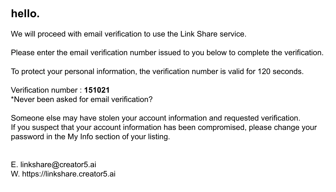 The Link Share service requires an authorization process via 'email', please have your primary email ready.