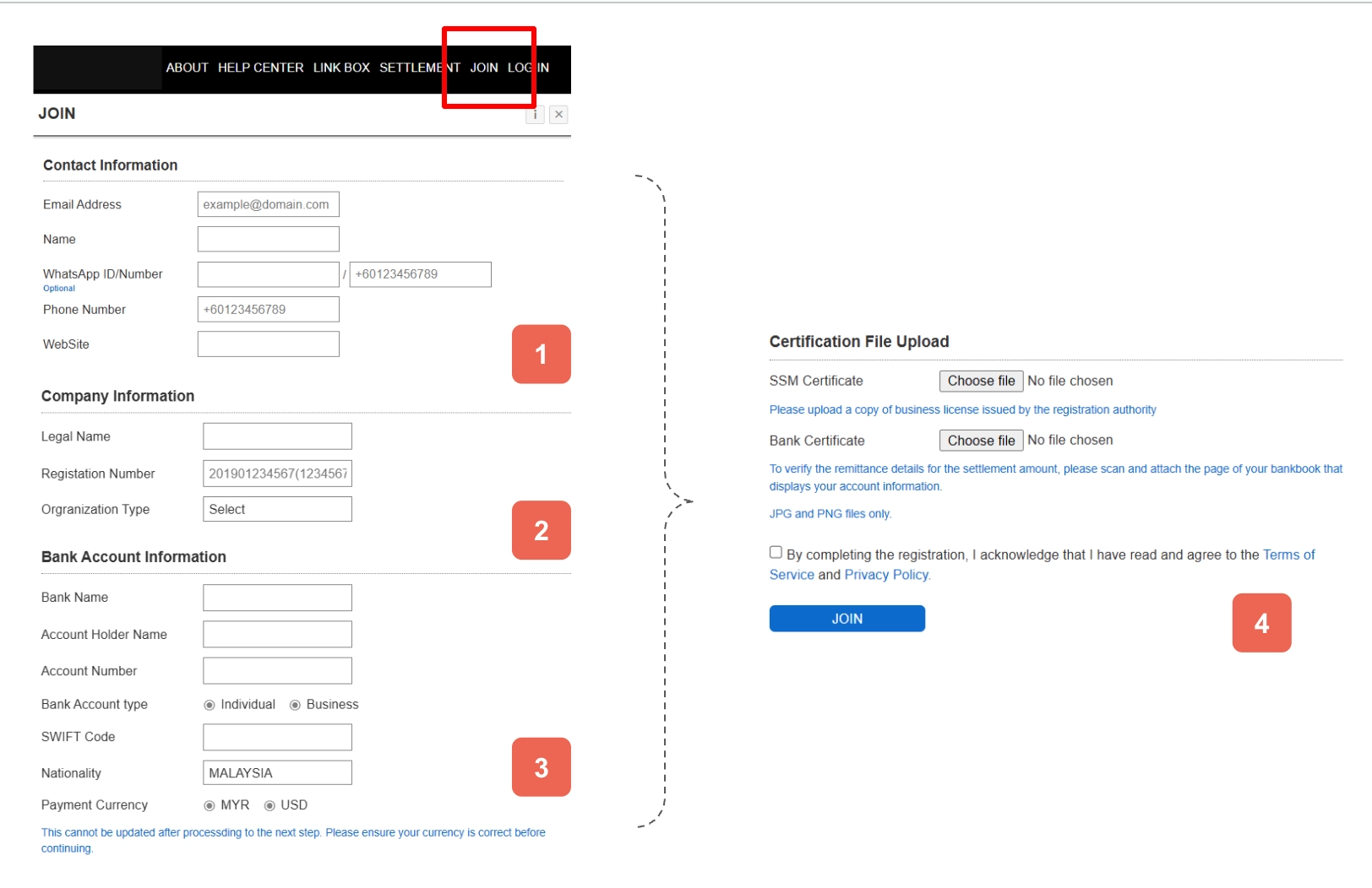 Comm. Fill in the business information for the account you are registering and the bank information for settlement. Please be sure to attach your verification documents for final verification. If you don't have verification documents, your subscription will be put on hold, or we may ask you for more.
