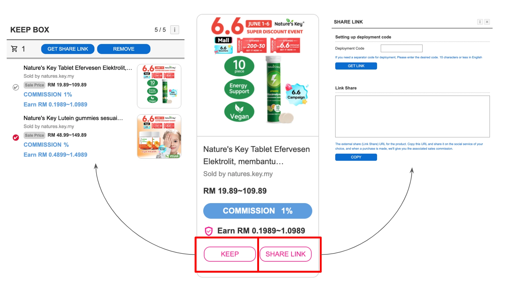 Comm. You can archive and extract links to individual products, and if necessary, you can archive multiple products in a KEEP BOX and reselect the required products to extract links.
